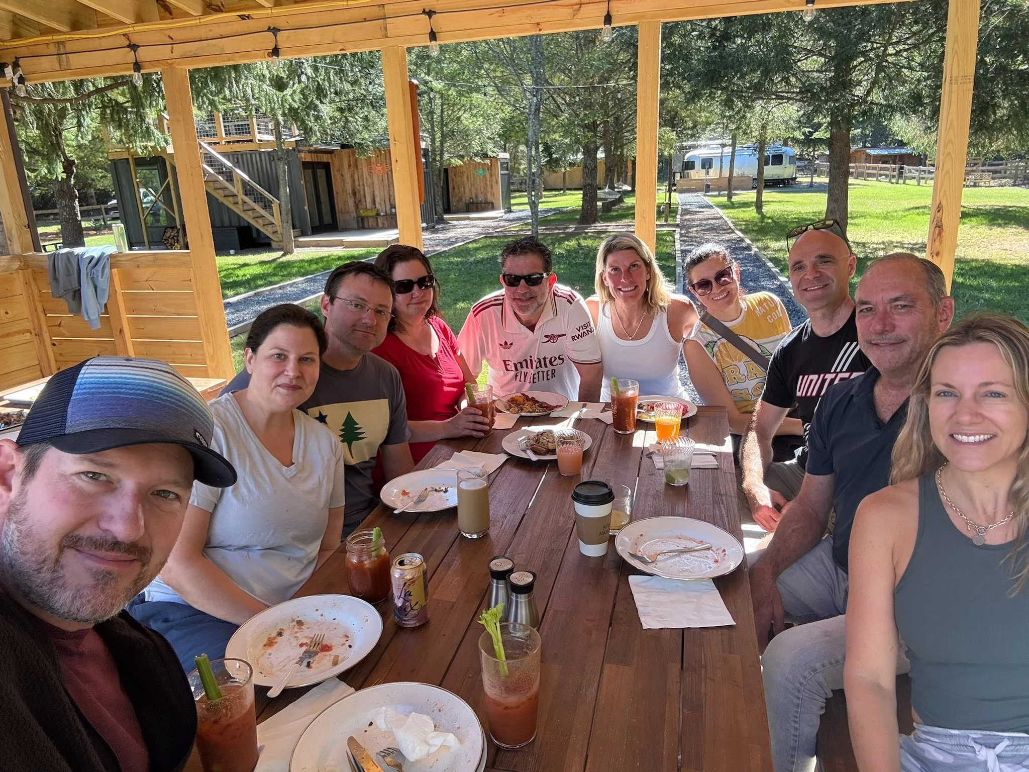Late breakfast or brunch cooked together on the outdoor griddle (think pancakes, bacon & eggs)
